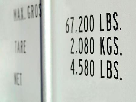 Details of a container door with signs