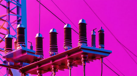 Vibrant view of electric components set against a bold abstract background showcasing the intricacies of power distribution in modern industry.
