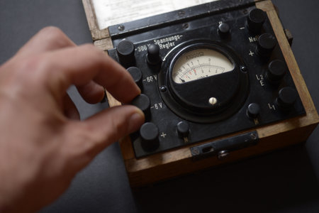 dial indicating a vintage power supply, close-up