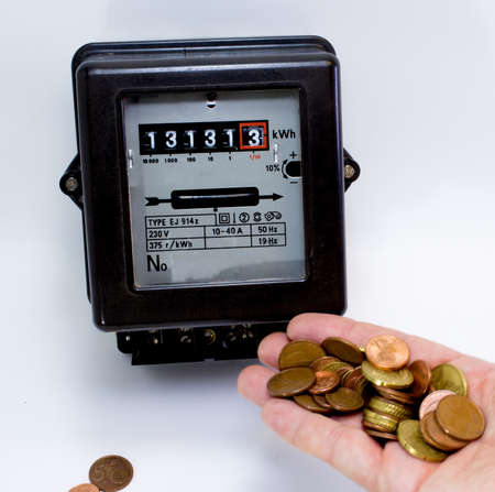 Electricity meter with Euro coins energy cost.