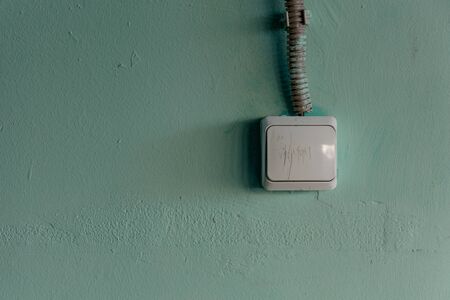 Old switch electric on white and green wall.