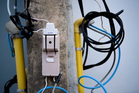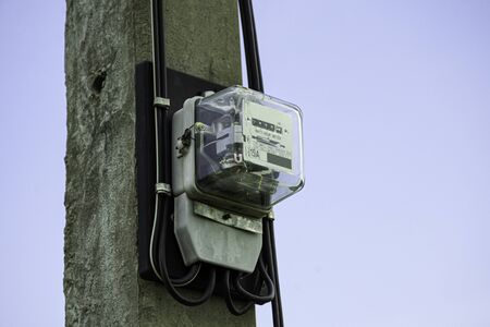Electricity meter on electric pole on 2020 April, 4 in Bangkok Thailand