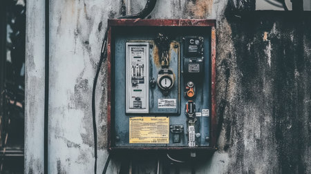 Explore the textures and details of a weathered power meter, showcasing urban decay. This image captures the essence of vintage industrial aesthetics in an urban setting.