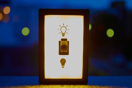 Light switch against a nocturnal background in a city to illustrate the environmental pollution by power generation