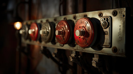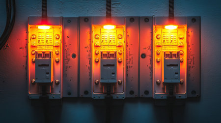 A striking close-up image of an electrical circuit breaker affixed to a wall, showcasing intricate details, soft shadows, and a textured background.