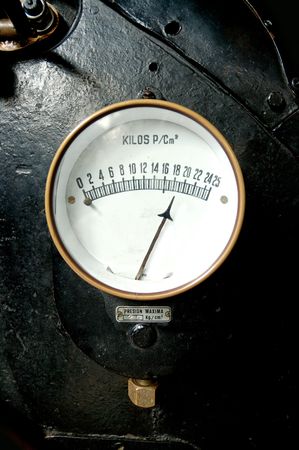 Pressure gauge in an old steam locomotive