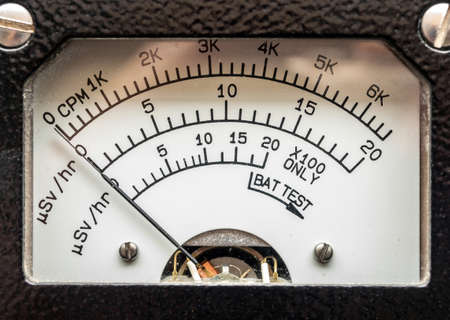 Count per minute scale for radiation contamination and microSIevert per hour scale for radiation dose rate on Dial display of Radiation survey meter
