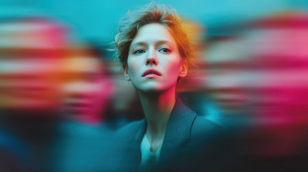 photo of beautiful woman with colorful mixed lighting , generative AI
