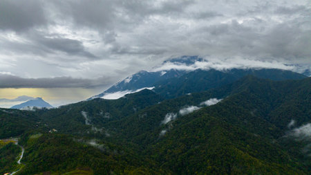 Mountains with rainforest and jungle during sunset. Borneo,Sabah, Malaysia.
