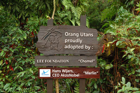 MANDAI, SG - APR 6 - Singapore Zoo orangutan sign on April 6, 2012 in Mandai, Singapore.