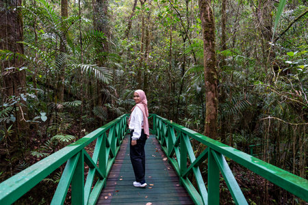 Asian woman leisure walk at Botanical garden in Kinabalu National park in Kundasang, Sabah Borneo Malaysia