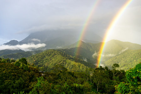 Double rainbow at the foothill of mount Kinabalu Kundasang Sabah Malaysia