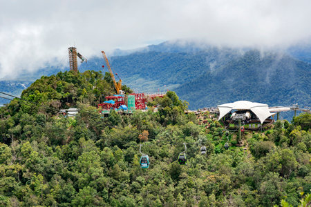 Malaysia, Langkawi, November, 2022: Langkawi Cable Car, also known as Langkawi SkyCab, is one of the major attractions in Langkawi. These cable cars ride to the peak of Gunung Mat