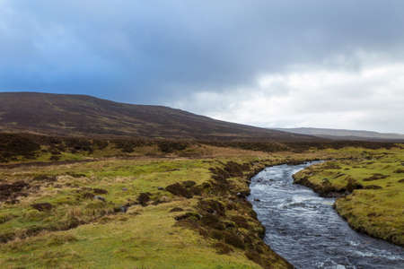 Beautiful landscape image of a mountain river flowing through a green meadow