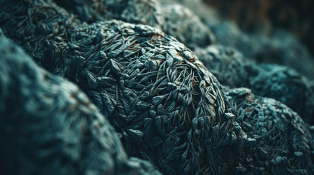 Explore the intricate details of natural fiber weaving in this stunning close-up photograph, showcasing the rich textures and patterns of handmade craftsmanship.