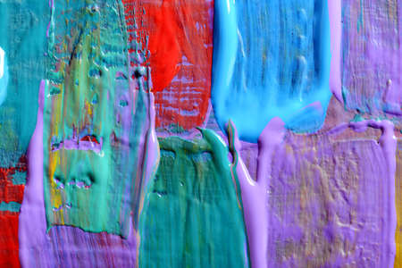 Rainbow colored acrylic paint on a white background close-up macro photography