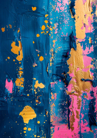Vibrant retro painted wall texture in blue and yellow for artistic backgrounds