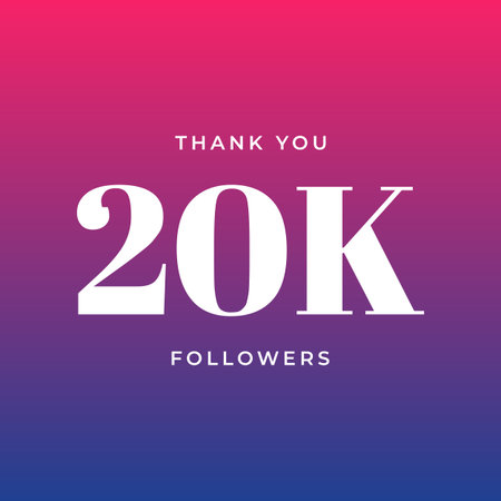 Thank you banner celebrating reaching 20.000 Followers, with icon and pastell background