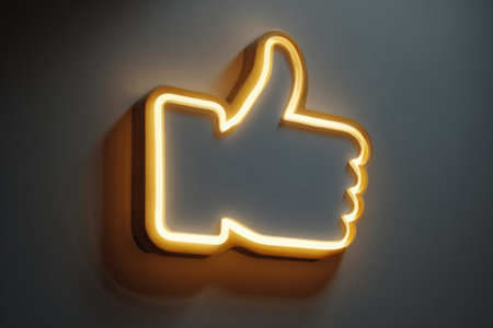 Glowing neon thumbs-up symbol conveying approval, positive feedback, and success in social media or online communication