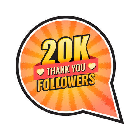 Thank you 20000 followers icon in flat style. Subscription amount vector illustration on isolated background. 20k follower sign business concept.