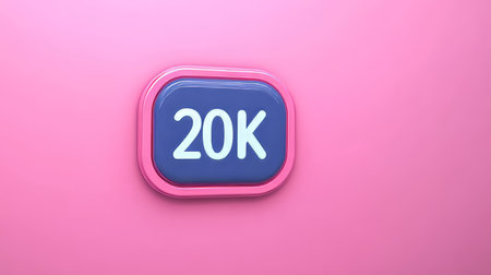 Red Social Media Button with 20K Followers and Thumb Up Icon on a Pastel Pink Background