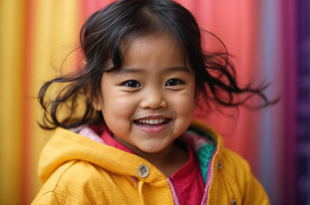 A happy child against a bright background, expressing joy and carefreeness, personifying childish spontaneity.