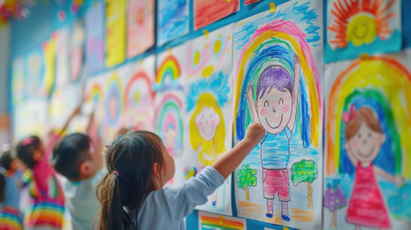 Colorful Classroom With Rainbow Decor and Striped Rug in a Daycare Center