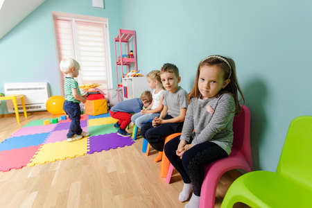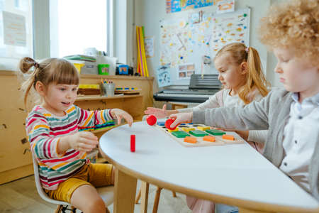 Toys for preschool in kindergarten. Cute pupil. Junior School.