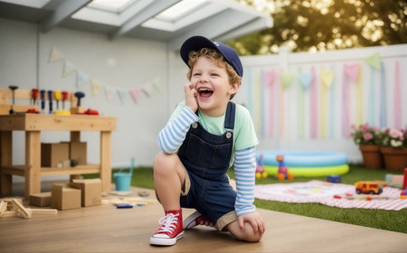 A happy child against a bright background, expressing joy and carefreeness, personifying childish spontaneity.