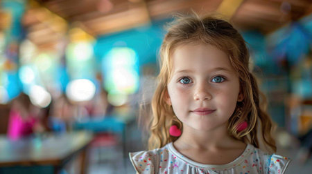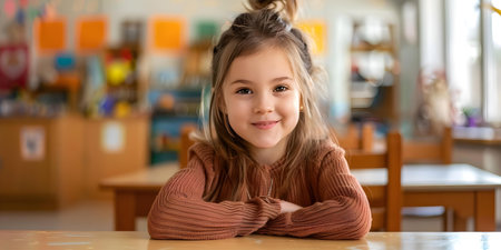 A Joyful Young Girl Engages in Preschool Classroom Activities. Concept Preschool Education, Classroom Activities, Early Childhood Development, Happy Children, Learning through Play