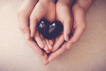 hands holding black heart, health insurance, family mental health