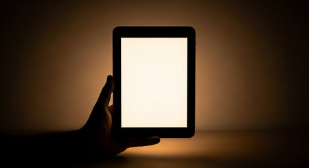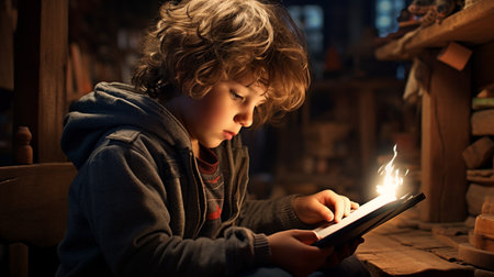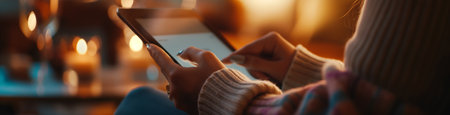 Cozy Evening at Home Woman Using Tablet by Candlelight.
