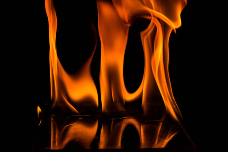 Fire flames on black background. Close up of fire flames isolated on black background.