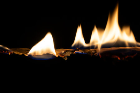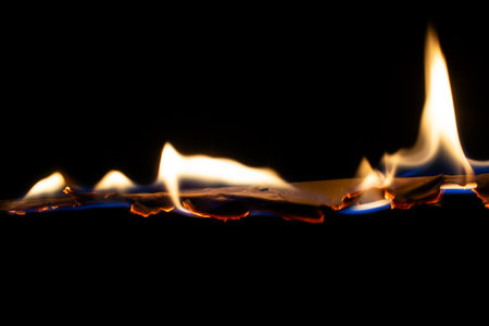 Burning match on a black background, its vibrant orange glow representing warmth, ignition, and potential energy.