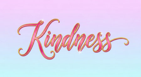 A pink and gold kindness lettering artwork on a soft gradient background design.