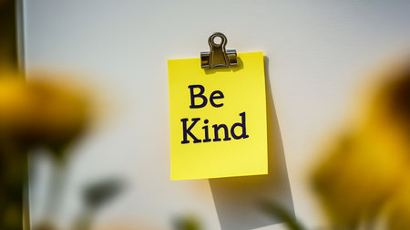 Daily Kindness Reminder Note with Positive Message Attached to a Minimal Background for Office Use
