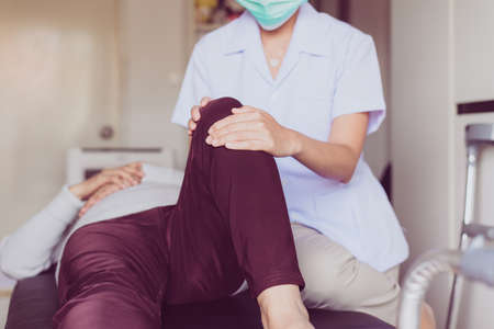 Physiotherapist doing treatment to senior woman patient in clinic,Elderly women knee pain,Physical therapy concept