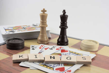 Kings in Chess - Checkers and cards with queen in the background