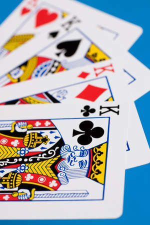 Four kings on top of old playing card. Top view