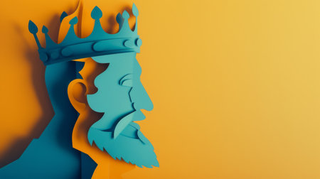 Paper cut-out of a king with a crown, exuding wisdom and authority.