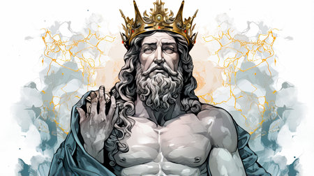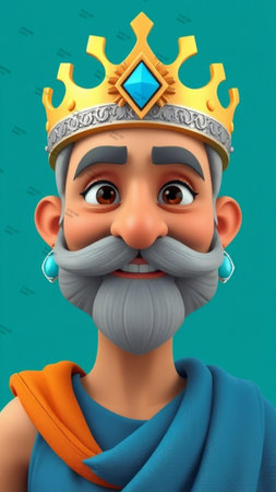 A regal man adorned with a majestic crown, exuding wisdom and power.