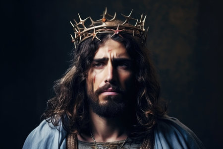 Portrait of Jesus Christ with crown of thorns on dark background