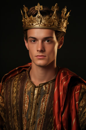 Regal portrait of a crowned man in ornate attire