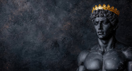ancient greek king statue with golden crown