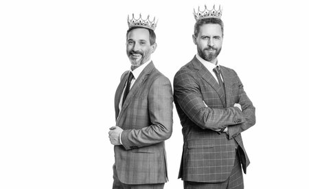two business man in suit and crown. business teamwork and collaboration. partnership concept. partner team. successful partnership. business reward. business partner isolated on white. copy space