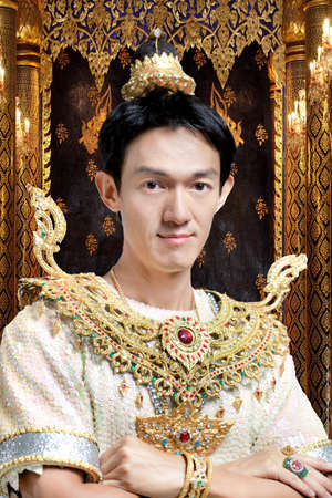 Thai traditional costume in thai art style on gray background.