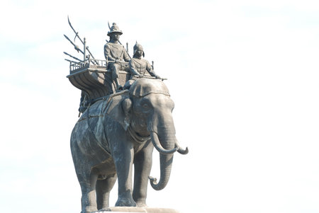 The elephant statue in the blue sky Monument of King Naresuan in Thailand.
