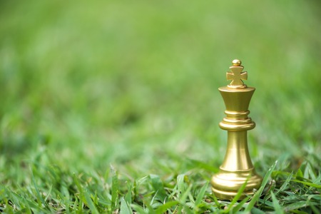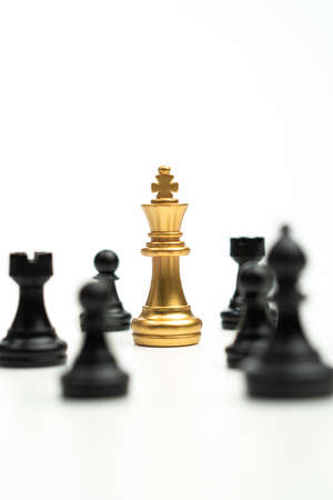 Golden Chess King standing to Be around of other chess, Concept of a leader must have courage and challenge in the competition, leadership and business vision for a win in business games