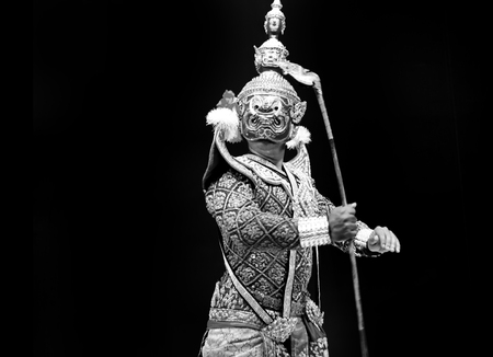asian and Thailand traditional performance drama call ramayana in giant suite on black isolate background