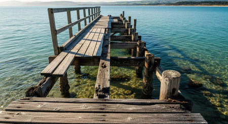 Captivating aerial view showcasing a wooden pier extending over tranquil waves, inviting you to explore the beauty of nature